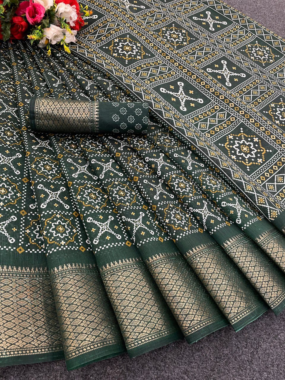 Cotton Blend Saree – Bottle Green with Intricate Woven Detailing